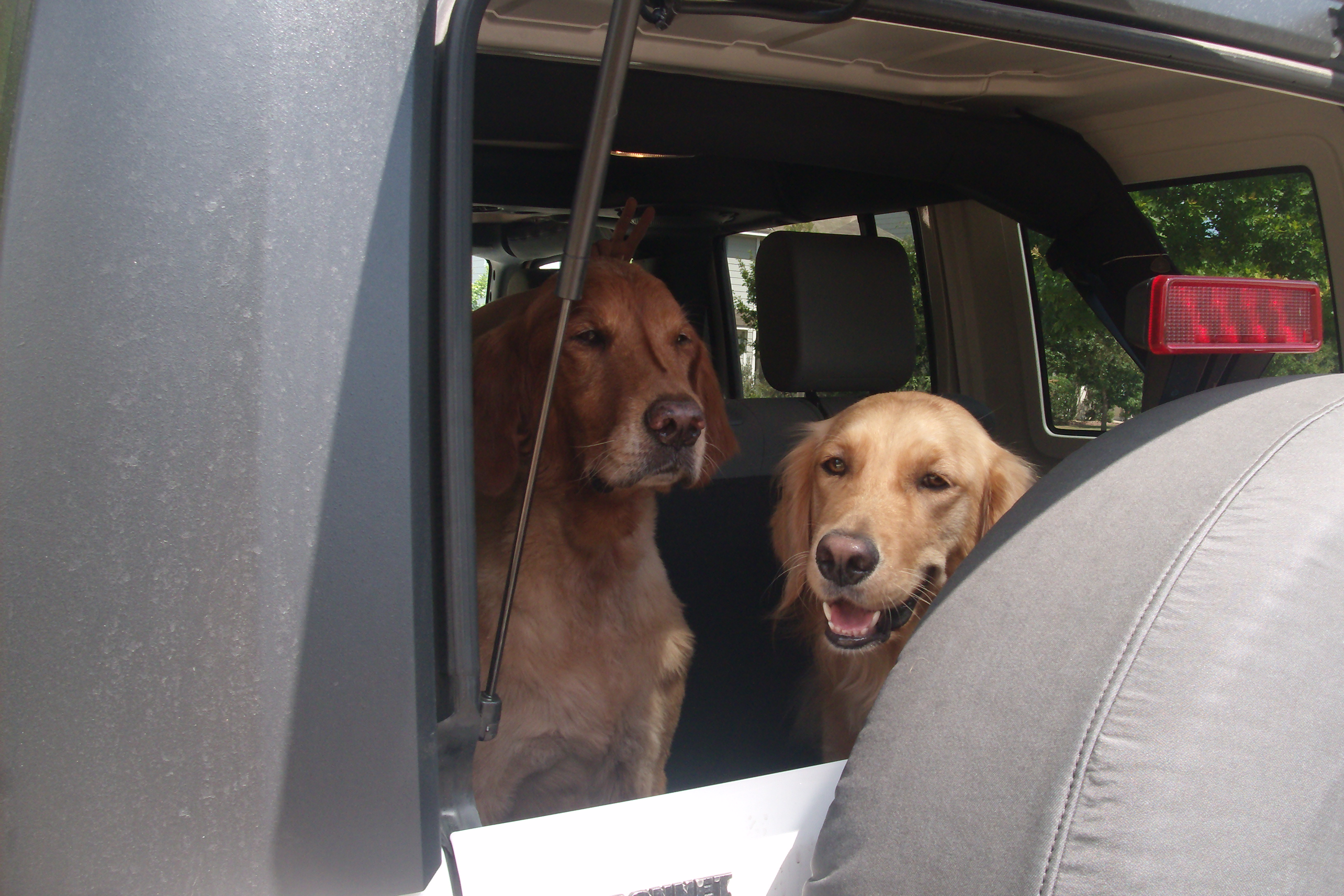 Photo 2 – Barney and his GRR sister, Jennie, hanging out in Barney's Jeep.