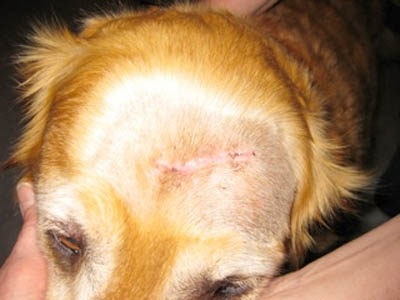 (where an unsightly lump was removed from her noggin) is healling well. She sat
