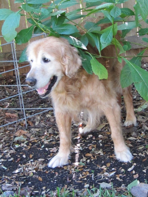 Is there a special home out there for a wonderful older gent with back problems? He is too old and fragile for little kids, too sore from his back to chase balls or go for walks, but oh how he loves car rides! Once lifted in he is happy to motor along, looking out the window. And we can tell he was really into balls as a young dog: he lights right up when we roll a tennis ball slowly to him. When Godfrey has a ball in his mouth, he acts as pleased as punch. :-)