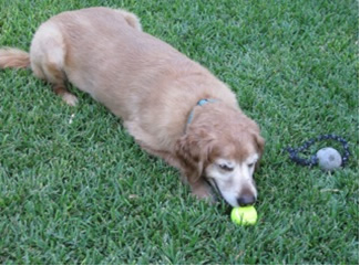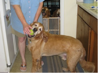 Lucas will need a family who understands (or is willing to learn about) T-storm phobia, and of course once we have a storm we’ll be able to tell you a lot more about his reactions. But Luke’s foster mom sums it up for now: “He may be a ‘mature’ Golden, but he has lots of energy & needs an active family to walk him and play fetch. He gets along with all the other fosters and ignores the resident cat. What a great personality!”