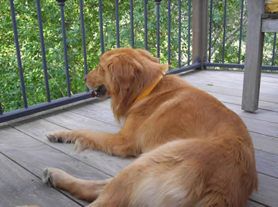 I want to tell you about Parker, a young Golden Retriever, who touched my life much too briefly. I fostered him for only 9 short weeks, but he made such an impression that I will never forget him. Unfortunately, by the time he was found and turned over to Gold Ribbon Rescue, he had already contracted a multitude of diseases and maladies. I’ll never know what he went through before he came to me, but I do know that it didn’t seem to affect Parker. He was happy to be where he was, wherever that happened to be. I’ve met a lot of dogs, and most of them want to explore their surroundings and sniff everything before they will give you the time of day. Not Parker. The first thing he’d do was come over, sit down at your side, and look up at you with the sweetest, most gentle eyes you’ve ever seen. They seemed to ask, “Are you the special one who will love me forever?” I didn’t know that I was at the time, and I had no way of knowing that forever would be so short. The more I got to know Parker, the more I came to realize that he touched everyone who met him. There was something about him; a trusting, knowing calmness. People couldn’t resist petting him and he loved it. He would have been a great therapy dog and I was looking forward to training him someday. I guess it wasn’t meant to be.