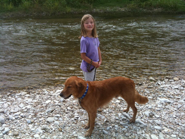 Ruby (formerly Ruffles) is my problem child. She is the typical now 2 year old. When I got the call to foster her, I had only had Ty for about a week. But I thought we were game for the challenge. I picked Ruby up at Tanglewood and she was spirited from the start. Initially she did not want to get in the car and tried to take me for a romp, but we soon mastered that hurdle and we were on our way home. In the coming weeks, I learned about typical young Golden behavior as Ruby preceded to eat her way through my closet – only my favorite shoes or clothes would do - and none of the cheap ones for the princess. She was very discriminating! And if didn’t matter if they were on a shelf or the floor – all were fair game for Ruby. Pillows, fuzzy toys, area rugs all suffered through Ruby’s mouth and teeth. I wasn’t sure I would have a house left standing by the time she was finished. But along with my belongings, Ruby had also stolen my heart. I adopted her in December 2009 and then about a month later, noticed some bleeding. Off to the Vet we went, only to learn that she had a type of cancer that was sexually transmitted and fairly common for street dogs. She went through 6 weeks of chemo treatments and did fine. All of the vet techs loved seeing her – and she loved her weekly visits to her friends too. Since that episode, Ruby has been very healthy. She loves her cats, especially her BFF Stanley, and did really well with our first foster dog, Peachie. And she has never met a kid she would not lick and love to death.