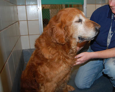 With his wavy dark red coat, open smile, and busy, friendly personality, this 8-year-old is definitely a keeper—hence the name. “He is adorable! He was behind the counter at the pound, standing up like a person waiting to help. The staff loves him. He still has plenty of energy & does a cute little bouncy dance. Good in the car, very responsive, just a fun guy.” Unfortunately, Keeper has heartworms… and at the vet for his check-up, he suddenly became feverish, then started to have trouble breathing. X-rays showed serious lung congestion, and blood tests revealed the problem: ehrlichia, a tick-borne disease. With anti-inflammatories and antibiotics, though, he’s feeling better, and he’ll be continuing his meds for a while. His badly swollen and infected ears also need help. Right now he’s enjoying rest and recuperation at a nice quiet foster home, and we hope to report soon that this wonderful Golden is back in the pink!