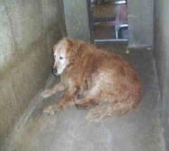 Ruben came to GRR after he just showed up one day in a nice lady’s yard. “Old, fat and sweet,” she said. All true! And also so terribly matted that the vet said, “He needs a trip to a professional groomer.” Which he got… and a whole lot more, too. Ruben was having such a problem with excessive drinking and lots of accidents that his foster mom said, “This has got to be more than stress.” And it was – the vet ultimately determined that Ruben’s symptoms were due either to a tickborne disease or to his heartworms (he just started treatment today, April 19), and put him an antibiotic, doxycycline. “Immediate, miraculous improvement!” says his foster mom. “As long as we take him out right after meals, there are no accidents any more.”