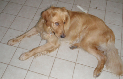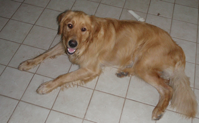Sam is a normal, pretty, well-behaved youngster. He is fabulous with our Goldens, and he lived with another Golden and a couple of mini-doxies at his first home. He loves to retrieve & is very good at letting you have the ball. No jaws of life needed to crank open this guy's mouth! Sleeps peacefully all night and doesn’t pester you to get up too early. As for grooming, well, let’s just say grooming & ear cleaning would appear to have been a rare event in his life. We have trimmed mats mixed in with burs from behind his ears, on his legs, tail, under belly to the extent I had to doublecheck that he was not intact lest I was performing an impromptu neuter with a pair of scissors! He put up with it all.