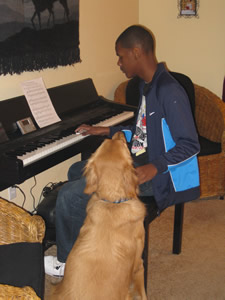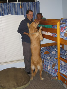 My new family has an older daughter who lives in another place with her husband, and so I haven't met them yet. But I can't wait! Then they also have another daughter who is 18 (Becca), so I get to hang out late at night with her and all of her friends. I really like to go walking on the hike and bike trail with her. She walks faster than when I go with Mom and Dad. They also have a boy who is 13 (Davis). He loves to play basketball and I could just watch him for hours. He plays the piano, and I like to help him practice. He's in charge of keeping the backyard cleaned up, and I love that he takes that job seriously! He likes to sleep in, but I think it's pretty important I push his door open and wake him up sometimes on a Saturday morning. Then there's the littlest boy—he's 10 (Dale). I'm in charge of waking him up in the mornings, and he sleeps on the top bunk. I haven't really figured out how to get up there yet, but I will one day... Anyway, Dale is in charge of feeding me. He likes to make me do super easy tricks, and then gives me treats! He has yet to figure out just how smart Goldens can be... all I have to do to make him happy is sit, lay down, cuddle on the floor with him, play tug-of-war, and come when I'm called!