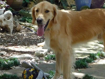 #10-124 Sparky came to GRR from a family who had purchased him “for the kids,” but the kids weren’t interested, so Sparky ended up lonely and bored in the backyard. Luckily, the owners surrendered him to GRR, and now he is living the life of a Golden’s dreams!