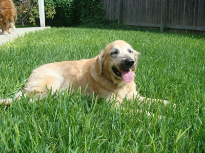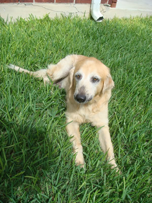 “Oh, about a hundred and five.” That’s what our volunteer said when we asked how old she thought Ray was! She’d zipped out to the shelter in response to an urgent plea: “We have a very sweet ,old Golden ret. I was wondering if you could help us get him out of here & into a foster home. Here is his pic, he was brought in as a stray. If you can help please let us know right away because we are very full.”