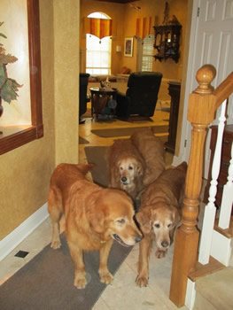 Magnum is polite in the house, and completely trustworthy. He doesn’t need to be crated and would probably be terrified if forced into a crate. He’s afraid of houseguests, but has improved since he arrived. Loud or unexpected noises still scare him… he'll take off running across the room at the sound of a dropped pot. He also backs away when we carry unusual items...garbage bags, scissors, laundry, grocery bags. Those are all scary things!