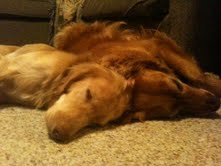So there’s this other dog, Sadie, here with me. Says she’s a Golden Retriever but she’s way more red than me – I’m more of a blonde. And, don’t tell her I said so but she’s a big girl compared to my 51 or so pounds. Gal acts like she owns the place – geez.