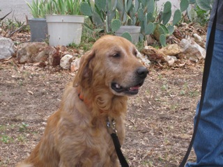 work, spotted him hovering nearby. Like so many Goldens, Alex has faith in