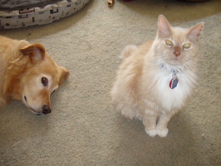 including Bonnie, my sometimes-snooty Flat Coat. Fine with the cats, too.”