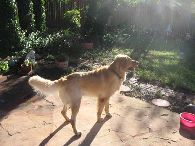 Traveler really doesn’t like the crate, so we’ll be leaving him to roam about when we are out and see how he does. (Keep your fingers crossed.) He is becoming more responsive to commands (sit, wait, come) but he only wants to do so much. He will need lots of practice!—and for sure he needs a home where his people are around a lot and want to spend time with him, who love to pet him and give him attention, and who can also be consistent with him. He needs a routine and consistency.