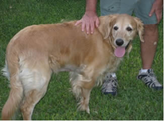 She is doing great, we get her stiches out later this week. She is sweet with my 6-month-old poodle, but I keep her separate from my 3-year-old male Golden: they just don’t like each other when they’re too close! Part of that might have been just that she felt so bad when she first arrived. Mostly she wants human attention, though. Everyone she meets is a new friend! She doesn’t jump up, but she likes to sneak up on the sofa next to you and lie on the floor at your feet. She goes willingly in to her crate or baby-gated area when asked, too. She is a good "guard dog" as she barks loudly when she hears noises or the doorbell! She loves to roll on her back in the grass and tote around her rawhide chew bone. She’s gentle, calm, good, and sweet. She’d love to be the center of attention in her new home.