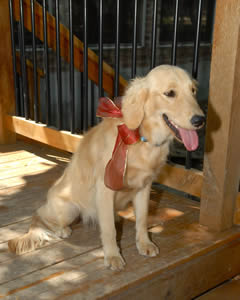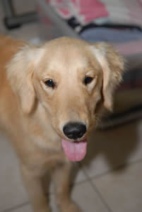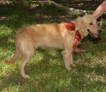 Buttercups, sweetpeas, violets and jasmine…. in SEPTEMBER? That’s exactly right! Not as unusual as it sounds when you take into account that THESE pretty blossoms are adorable Golden puppies. All four girls were brought to the same South Texas shelter as strays, but beyond that, we don’t have a clue where they came from… or even if they all came from the same place. (Maybe from a backyard breeder clearing out the excess “inventory”?) They’re all young, but two of them (sisters Buttercup and Sweet Pea) are tiny, just 7 or 8 weeks old. Fine-boned, dainty Violet is a bit older, maybe 10 to 12 weeks; and Jasmine is the oldest, at 4 or 5 months.
