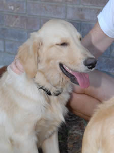 More what? More Goldens, of course! The very same day that one GRR team was motoring north for the Lockney puppy mill rescue, Jeanae was heading far south to pick up five MORE Goldens. One of them, baby Marigold, is a likely sister to our “Flower Girls” Buttercup and Sweetpea; somehow, she showed up at the shelter a few days later. As for the others—a few days earlier, Lisa had spotted a Craigslist posting featuring four pretty 5-month-olds. “I have 3 females (Summer, Belle, and Faith) and 1 male (Rocky) . Unexpectedly, this litter crept up on us. We really are just looking for a good home for these puppies.” When we contacted him, the owner was so relieved! He couldn’t support all those pups properly on his own (he had several more Goldens, too) and agreed to hand the quartet over to the same shelter where Marigold was staying, so that we could collect everyone at once.
