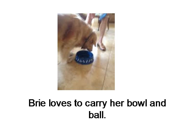girl indoors and likes to hold a ball in her mouth. In fact, she likes to tote