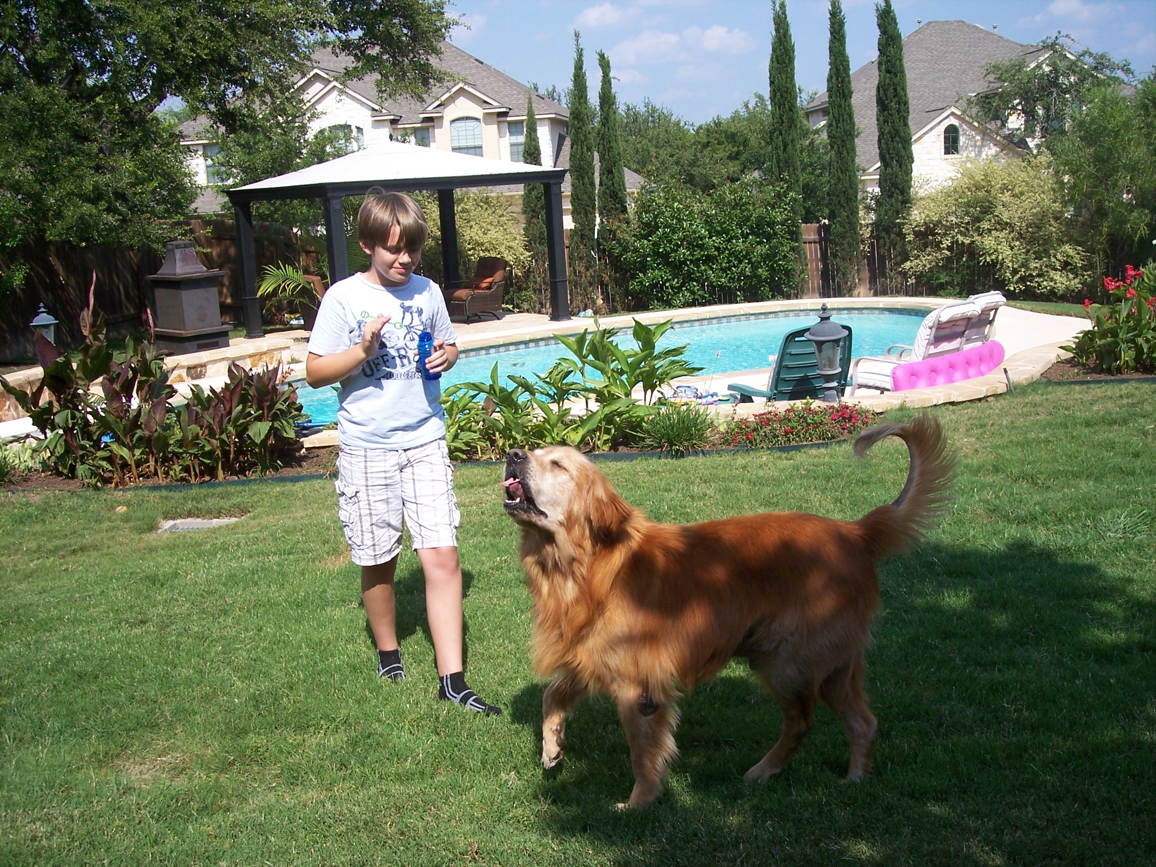 older, but this boy can still clear 3 feet to catch a drifting bubble! Of course