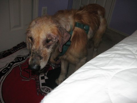 Golden Retriever.” She is so right! Yes, he has a bad case of sarcoptic mange,