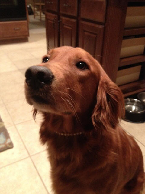 Meet Chelsea 2.0! She is dark red golden who is approximately 4-5 years old. Chelsea 2.0 has been making some serious changes on her way to furrever home. What better way to start than a new look and new identity? Step one in the make-over, putting on some weight. Yep, this lucky girl was the envy of every golden by not having to watch her waistline. Now that she is at her ideal weight, next up - a fancy new name. Why not Maisy? Maisy just so happens to mean pearl and what young fashionista wouldn’t be caught dead without her pearls?