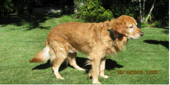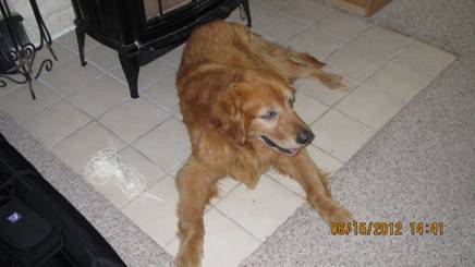head, while he is eating; nor has he bothered our other Golden, Abby, while she