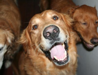He’s great with the girl Goldens in his foster home. He might grumble at another