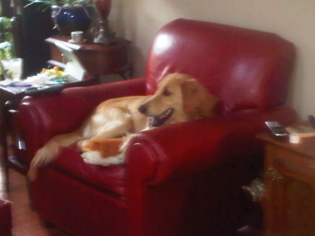 couches and chairs over sleeping on the floor, but will get down when asked. He