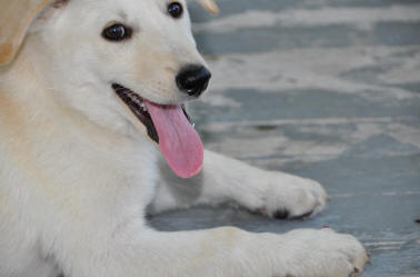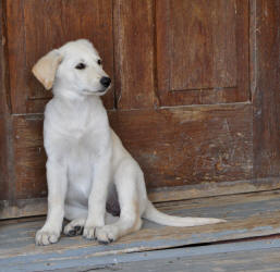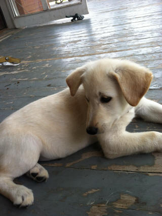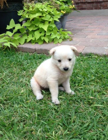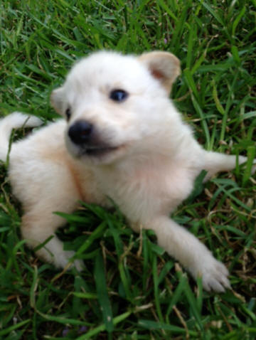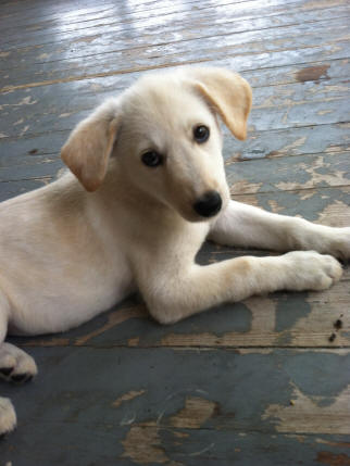 solid blonde pup with short fur (Erin looks a lot like her, but with a longer