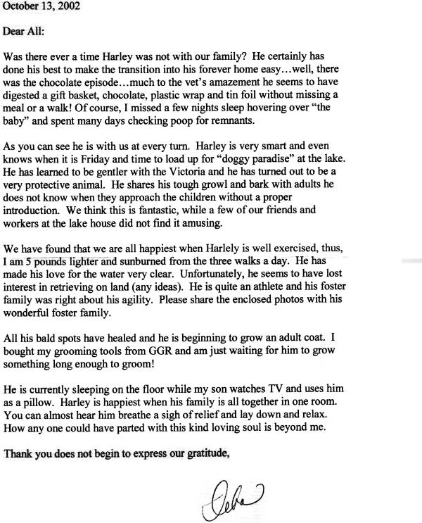 New Stories Coming Soon! If you have adopted a dog from us and have a success story, please submit it to us. Some of the pictures below may get larger by clicking on them. October 2002