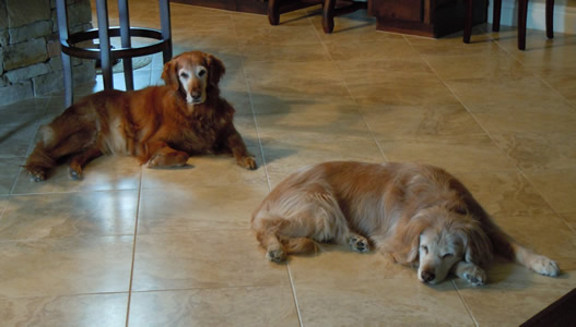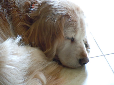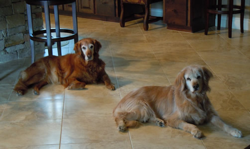 Ziggy loves to be around our other Golden. Plays well, kisses, cuddles at night, & the two chase each other in yard. We heard he had to be carried to the car when traveling from the shelter, but on the way home from the vet’s he had a good time and poked his nose out the window! Ziggy likes to be right next to people in the house; he loves to be touched and petted, and tries to get in bed or on the couch with us. He follows us around. If he doesn’t have a toy, he will pick up a shoe/sock/towel or anything lying on the floor and carry it in his mouth—he doesn’t chew it, just carries it around while wagging his tail. He loves to play in the house, but also knows when it’s time for bed—and he sleeps through the night, too.