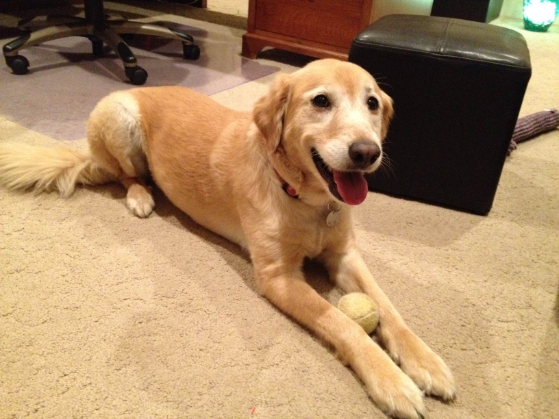 On walks, she can get snarky if another dog is approaching head on. She’s not the first Golden to act this way on lead, and with time, practice, and a few techniques (ask us about the booklet Feisty Fido!) she’ll get better. In the home, though, Marilynne is fine with other dogs and even offers to play, though if her partner gets too rough she will let him know to dial it back a bit! A relaxed second dog or no other dogs in her adoptive home would be fine.
