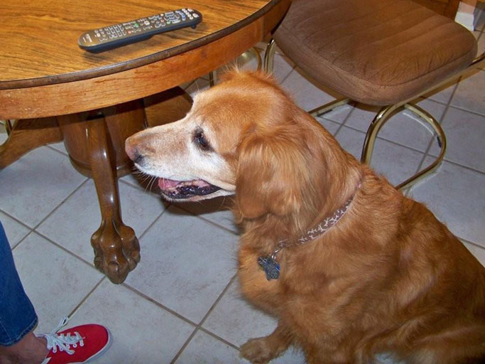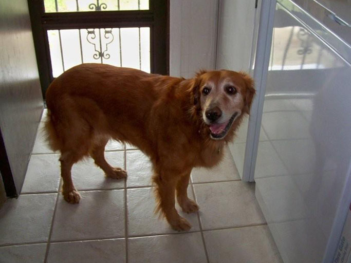 But Lynette follows all those rules, and Annie still got torsion. It’s just one of those things that does happen—so be very alert to the warning signs whenever your Golden isn’t acting like herself. If she tries to vomit and can’t bring much up, and what she does bring up is foamy mucus (a hallmark symptom); if she tries to defecate and cannot; if her stomach looks swollen and isn’t making the normal gurgling sounds; if she asks to go out at unusual times for her and then can’t perform; if she is anxious, restless, and cannot get comfortable; if she becomes unresponsive—IT IS AN EMERGENCY. Get her to the vet NOW, no matter the hour of day or night.