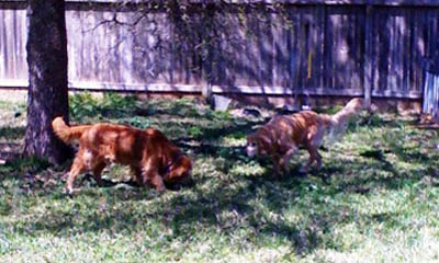 Compared to the way he was at first, Jingles is MUCH MUCH MUCH better in the house. He no longer counter-surfs unless a piece of meat is left unattended and even then the effort is more half-hearted. He is not the wild-child goofy thing he was when he arrived. The one thing Jingles just can’t seem to control is his penchant for raiding the kitty box. (: We have put up a gate separating him from the utility room where the cat box resides, but because of the doorway configuration he can sometimes knock it down. He still occasionally chases our cat Avi, but I must admit that sometimes Avi instigates things by "whapping" Jingles on the head when the cat is sitting on a piece of furniture and the unsuspecting Jingles strolls innocently past.