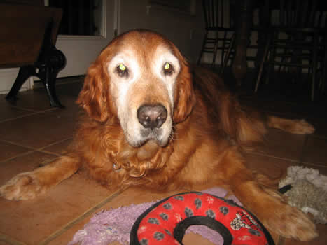 A quick update on Keeper’s ears. Like many a neglected Golden, he has apparently been living with ear infections for years… poor guy. His foster mom says he’s got the thickest ears she’s ever seen! He’s on a course of antibiotics, anti-inflammatories and ear drops to try to get the problem under control. Other than that…he had some chest films done last week (we’re trying to figure out when he’ll be ready for HW treatment), and “the radiologist said his lungs have improved, and I swear he's just not that bothered and not coughing much at all any more. I've been walking him and he has more energy than Clyde!”