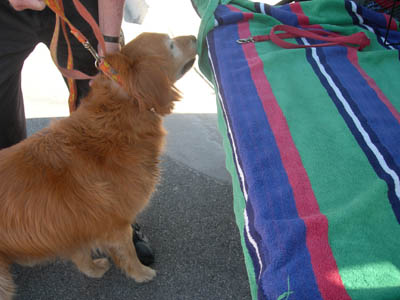When we first saw Major, he was not a happy pup. He had just undergone some big life changes, and he was frightened of everything and everybody. He objected to getting into the car, and then to getting out of the car. But now, just 10 days later, he is comfortable with almost every human and every canine—don’t really know about felines—and hops into and out of the car when he has the opportunity to go on an outing.