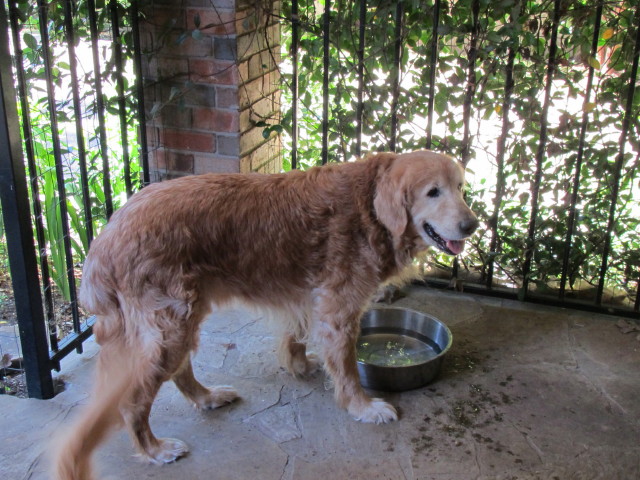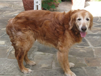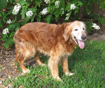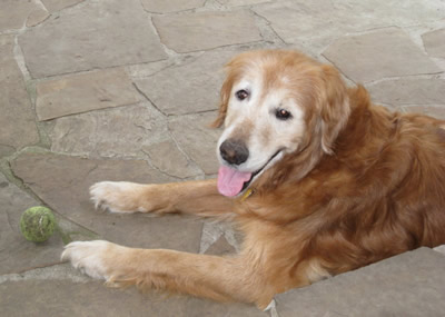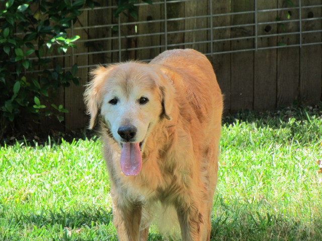 Is there a special home out there for a wonderful older gent with back problems? He is too old and fragile for little kids, too sore from his back to chase balls or go for walks, but oh how he loves car rides! Once lifted in he is happy to motor along, looking out the window. And we can tell he was really into balls as a young dog: he lights right up when we roll a tennis ball slowly to him. When Godfrey has a ball in his mouth, he acts as pleased as punch. :-)