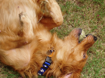 Jake loves tennis balls. He will chase other toys, but he really, really goes for tennis balls. He jumps in the air, twists around and is very agile trying to snag them. He will bring them back, mouth them for a minute or so, then drop them for another throw. He’s very light on his feet and has a walk like an Irish Setter. And you should see how fast he can wag his tail back and forth!