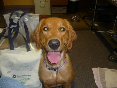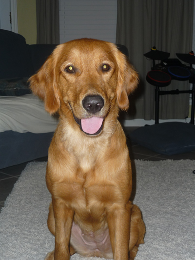 After waiting a little while, we finally got the call about Maggie—an 18-month-old female Golden who had some experience with kids! The owners were expecting a baby and the wife had developed allergies because of Maggie. They thought shaving her might help, but after that didn't work the husband decided they must surrender her. GRR needed to know if we could serve as her foster family since all other foster families were full. Of course that was the one week all summer that we were going on vacation, but after seeing pictures... how do you say no? We said yes and worked out the details with GRR so that we were ready for her the following Wednesday. I was a little nervous as I drove to pick her up at the vet, but she came to me immediately and licked my face. As the assistant helped me out to the car with all of her stuff, Maggie raced to the car and jumped right in as if she had known me for years! I took her to work with me that day so that we could get to know each other. She behaved really well and I kept thinking… how could someone have given up this dog? I’m grateful they did because now our family can’t imagine our lives without her. Here are some pics from Maggie’s new life. Thanks so much GRR!