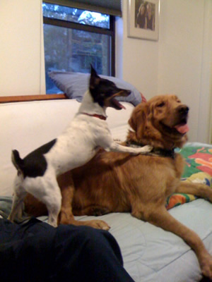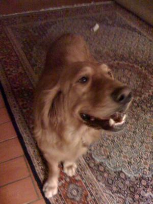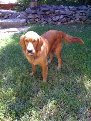 Dawson is a wonderful dog! He has taken care of his potty business outside with no slip-ups; he eats well; he plays energetically but patiently with our (sometimes annoying) toy fox terrier; he sleeps through the night in the living room on his bed and greets us with a wagging tail each morning when we come downstairs. No counter surfing, no chewing on anything except dog toys and tennis balls (which he LOVES).
