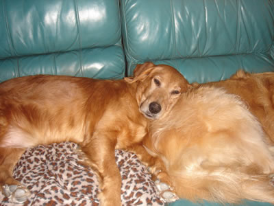 And when it comes to puppy mill dogs like 6-year-old Madison and 5-year-old Mikayla… how can we ever put into words how wonderful it is to watch them opening up & learning to accept the carefree existence every Golden deserves? Dogs like these face special challenges as they adapt to a new world that is so very different from what they’ve known so far. They’ve gone from a grim, shut-in existence—confined in stacked crates in a concrete-walled enclosure, with no toys, no play, no affection, and not even a name of their own—to living in homes where they can snooze on a soft sofa, walk on grass, play with toys, and, most important of all, get all the care and love they’ve missed out on all these years. The switch from a shut-down, narrow world to one where everything is “on” and open can be overwhelming.