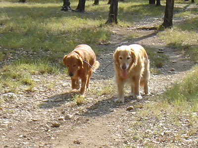 She is EXCELLENT in the car, EXCELLENT & very calm in the house, GREAT on lead—she loves her nice, slow walks! She has been the most wonderful girl and gets along so well with our five Goldens. She eats with the five in close proximity and shares treats when they all gather around and there is no quarreling.