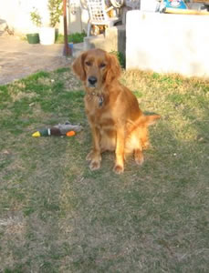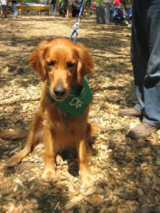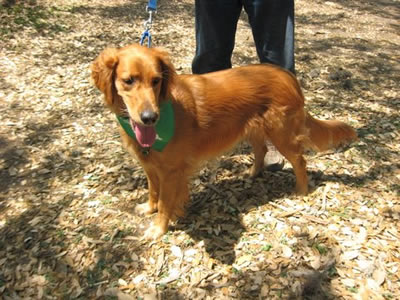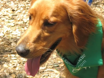 Her official GRR name is “Baby” -- but if you say "baby," she will bring you a stuffed squeaky toy. She knows her real name is "Buffy.” And I am here to introduce you to the star you have all heard about: Buffy-the-Vampire-Slayer. Yes, this cute little girl is not only friendly, but very brave. Just watch as she will save you from an attacking squeaky toy by taking it away from you. Ever vigilant, Buffy sits on command, ready to spring into action against a scary bird shadow or to ensure that an evil dog treat is subdued & obliterated!