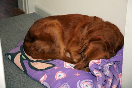 * My own doggie bed tucked in the corner of my new owners’ bedroom. I sleep like a rock at night, curled up on my soft bed, so I want my own spot to lay my head.