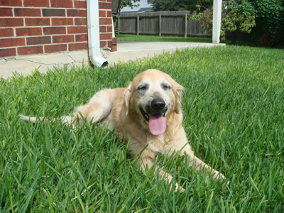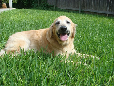 “Oh, about a hundred and five.” That’s what our volunteer said when we asked how old she thought Ray was! She’d zipped out to the shelter in response to an urgent plea: “We have a very sweet ,old Golden ret. I was wondering if you could help us get him out of here & into a foster home. Here is his pic, he was brought in as a stray. If you can help please let us know right away because we are very full.”