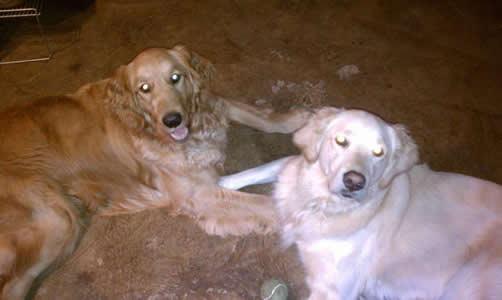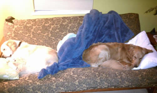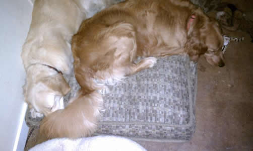 First order of business was to wean him off the anti-anxiety drugs and help him feel secure in a new home where his people—sometimes Mom, sometimes Dad—are home almost all the time. With love and patience, McHarley has made tremendous progress over the past three weeks, and he’s having the time of his young life. He immediately bonded with his Golden foster brother, Sherman, I and the two spend lots of time racing around the backyard or just curled up together for a nap. A tired dog is a good dog, as the saying goes!