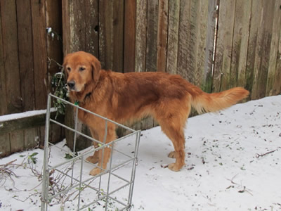 Now check out the February Magnum: could this be the same dog? The healthier he gets, the more we’re realizing that he’s no senior! He’s perky, shiny-coated, proudly sniffing the frosty air.He’s added ten pounds (and still needs to gain ten more) and bags of confidence. The dog who was reluctant to stand up has become a retrieving champ who likes to tote 2 tennis balls at a time. He has an hiliarious “woo woo” bark (often produced when his mouth is stuffed with tennis balls, which creates an even funnier sound) and adores the 5 PM Dog Drive through the neighborhood.