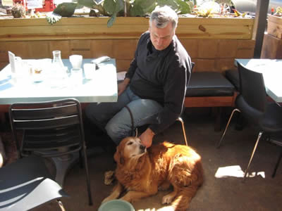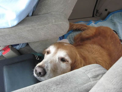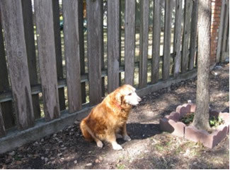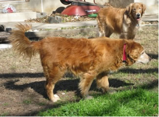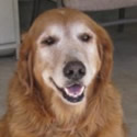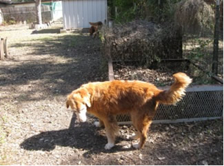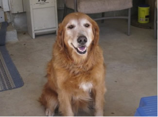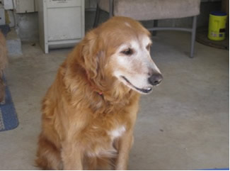 We wonder just how Sunrise got lost and why nobody was looking—because the vet says she’s had really good care, including a fairly recent teeth-cleaning. Just look at those pearly whites… amazing for a ten-year-old dog! Like many a middle-aged Golden, she is just a little bit plump & needs to pare off around ten pounds. Looks like she’s had ear infections in the past, but they’re nice & clean now. She IS being treated for a bladder infection—probably she was just holding it in too long while confined at the pound. She’ll be all better soon.
