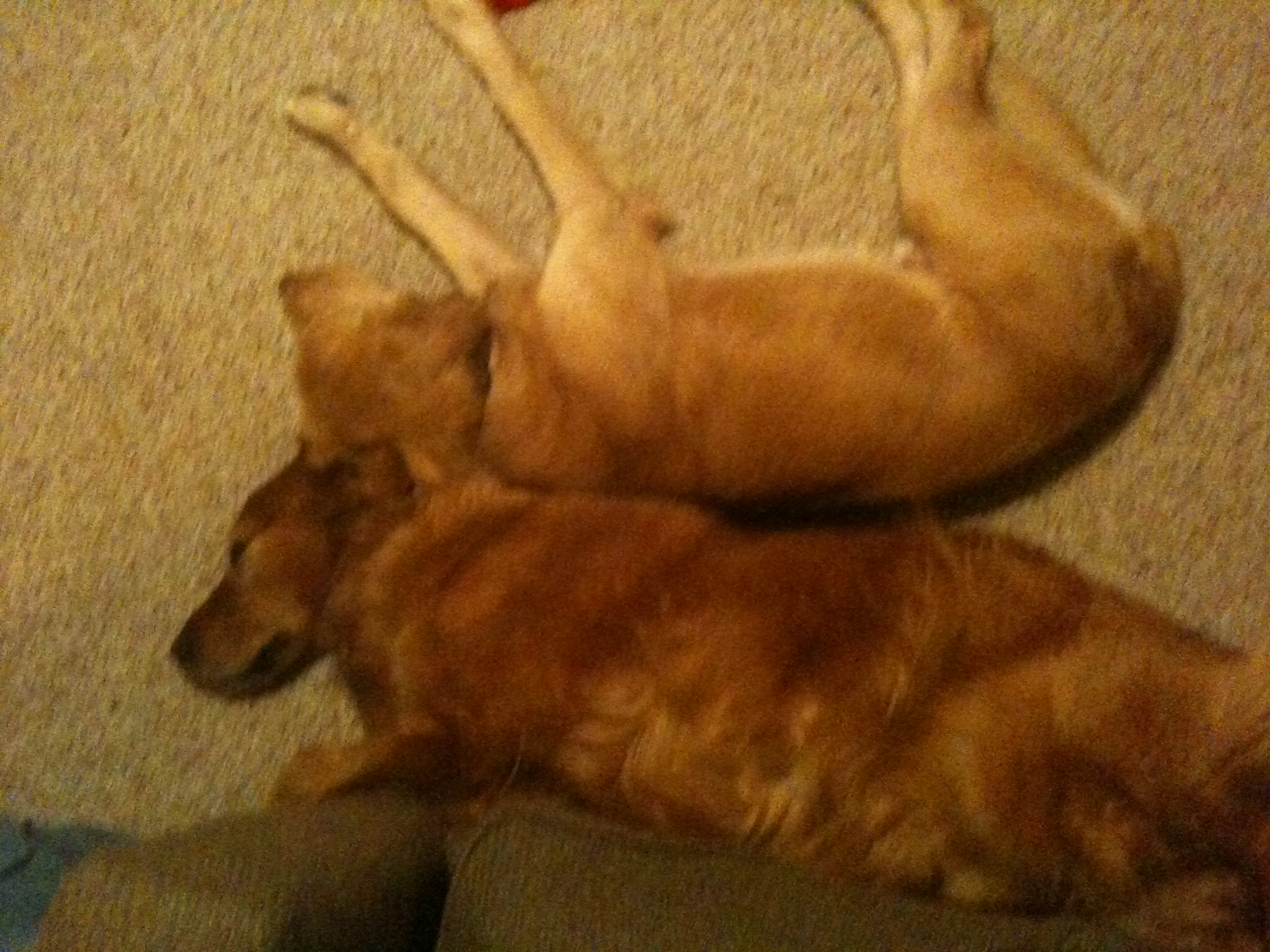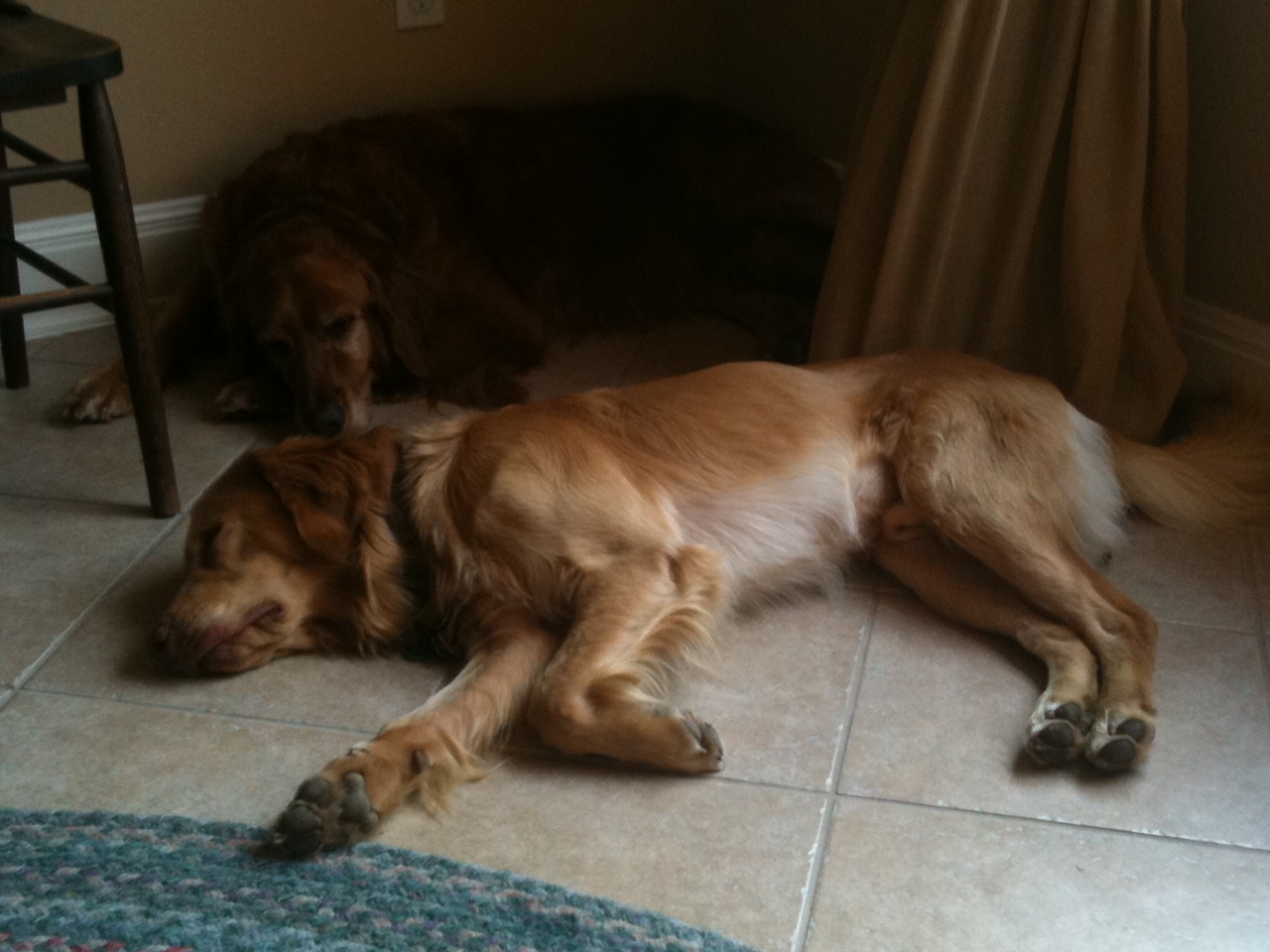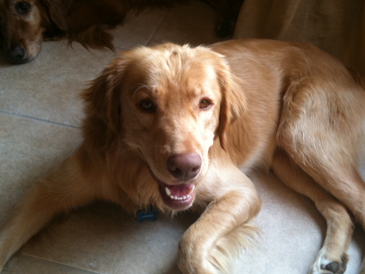 So there’s this other dog, Sadie, here with me. Says she’s a Golden Retriever but she’s way more red than me – I’m more of a blonde. And, don’t tell her I said so but she’s a big girl compared to my 51 or so pounds. Gal acts like she owns the place – geez.