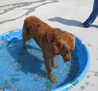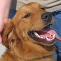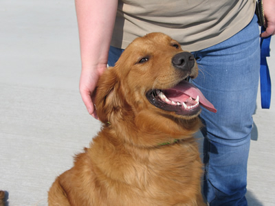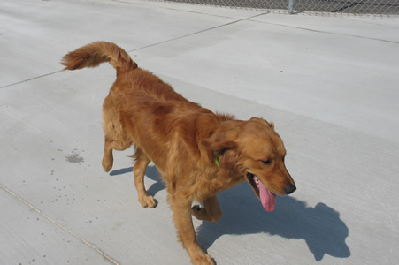 Talk about a million dollar smile! You can tell from that Golden grin that he’s the soul of good nature. All he needed was a name, and “Just call him Goofy Griffin!” said volunteer Bev after meeting the charming young lad. He’s a typical bouncy young Golden: prances around, jumps, pulls on the leash, splashes & rolls in water, gives kisses, gets distracted, makes friends with everyone he meets, makes you laugh. “Whee! Life is a blast.”
