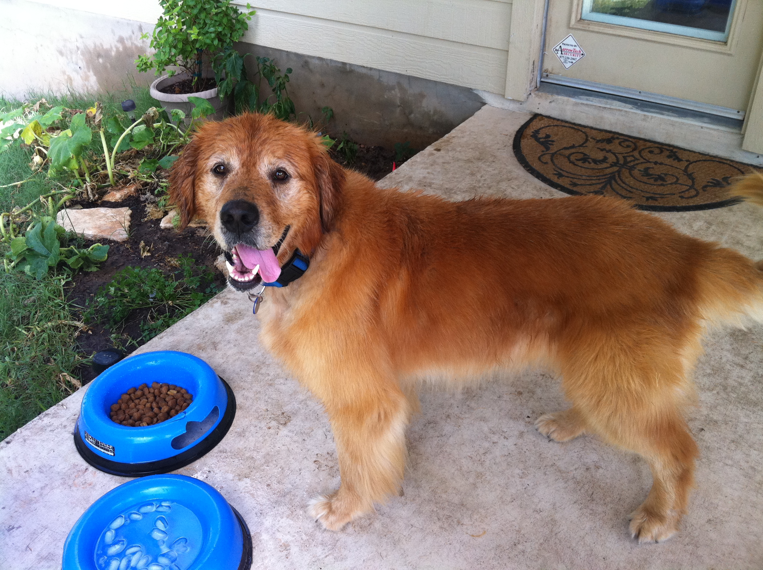his path! He loves water, and whenever the hose is on, there he’ll be, pouncing